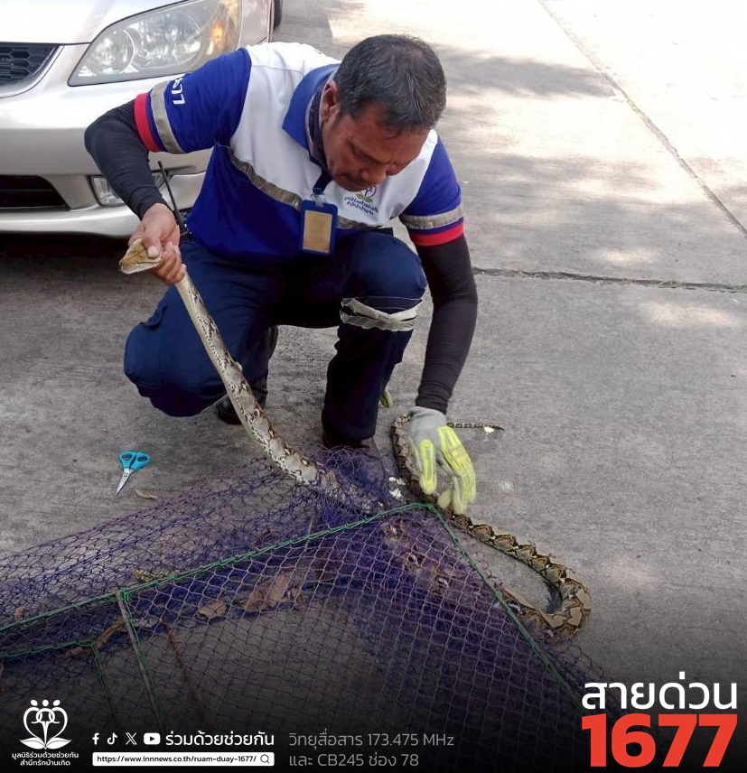 ประชาชนขอความช่วยเหลือ มีงูเหลือมติดตาข่าย ซอยเสรีไทย 95 อาสาร่วมด้วยเร่งเข้าช่วยเหลือเป็นที่เรียบร้อย