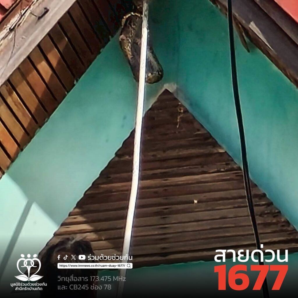 ช่วยจับงูเหลือมบนหน้าจั่วบ้าน ถนนพระยาสุเรนทร์