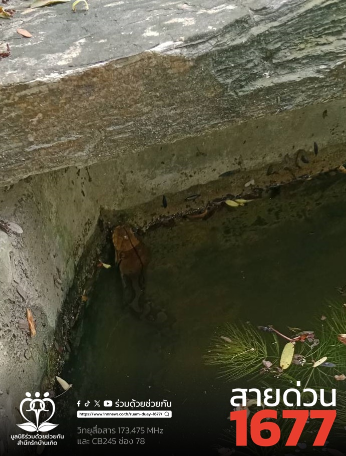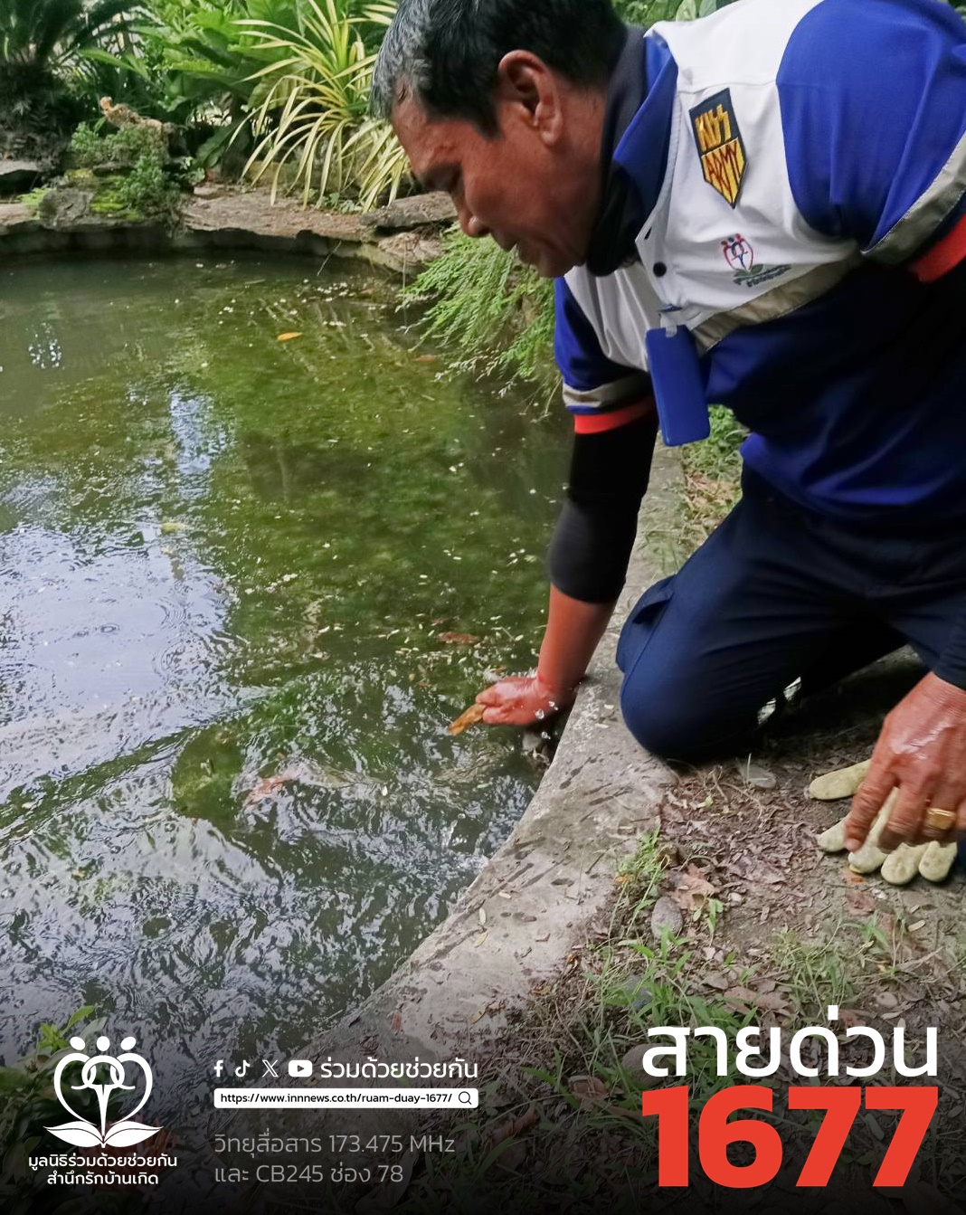 อาสาร่วมด้วยคุ้มภัย 006 ตรวจสอบพบงูเหลือม ขนาดความยาวประมาณ 1.5 เมตร ซ่อนตัวอยู่ในบ่อปลา