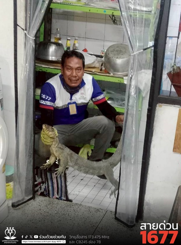 อาสาร่วมด้วยคุ้มภัย 006 ได้เข้าตรวจสอบ พบเป็นตัวเงินตัวทองจำนวน 1 ตัว ความยาวประมาณ 2 เมตร หลบซ่อนตัวอยู่ใต้ชั้นวางของภายในห้องครัวของบ้านพัก จึงได้นำอุปกรณ์เข้าช่วยเหลือ ทำการจับตัวนำออกมาได้เป็นผลสำเร็จ พร้อมนำใส่กระสอบ และนำไปปล่อยคืนสู่ธรรมชาติเป็นที่เรียบร้อย พื้นที่ สน.มีนบุรี