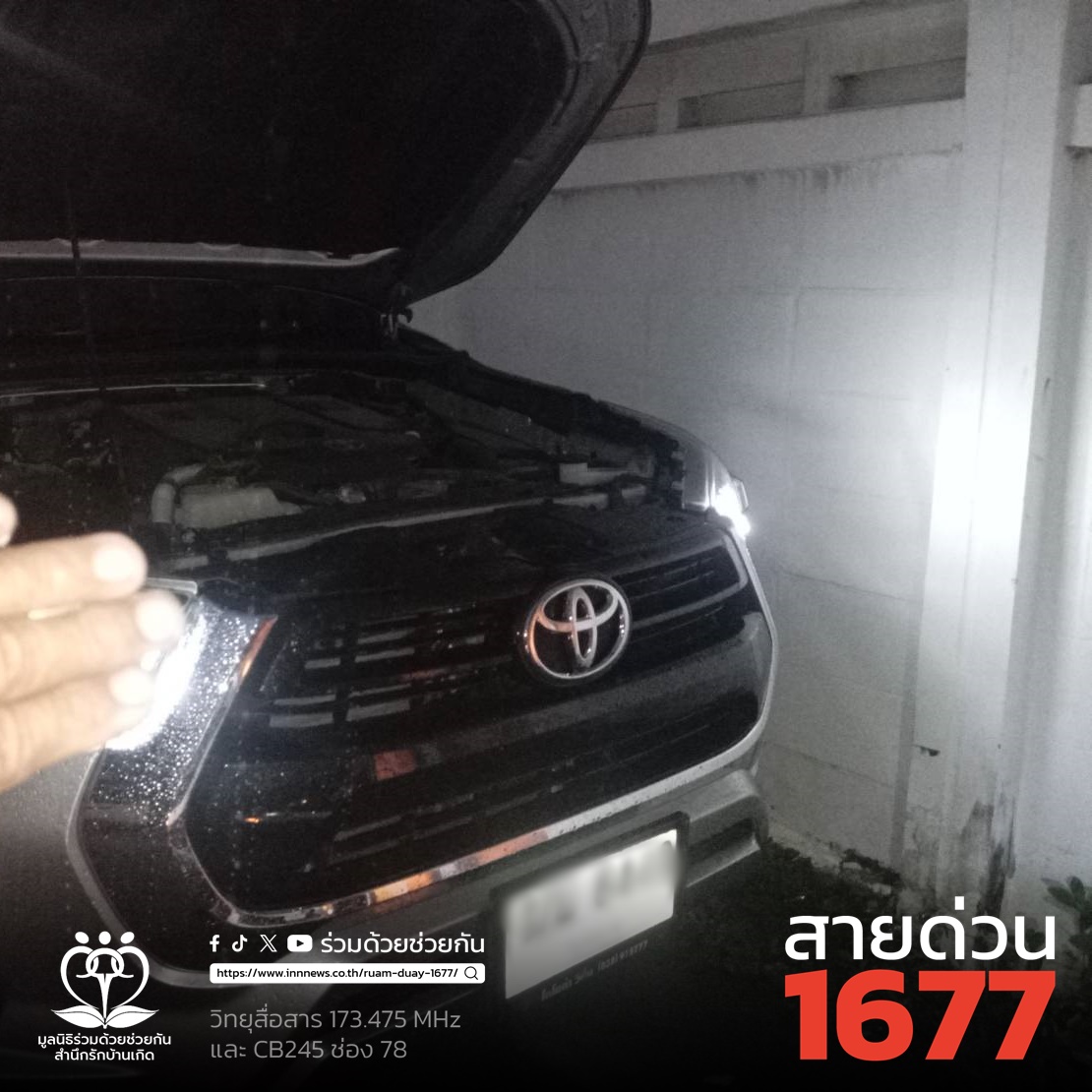 ศูนย์สื่อสารร่วมด้วยช่วยกัน ประสาน อาสาร่วมด้วยฯ ตรวจสอบช่วยเหลือ ดำเนินการพ่วงแบตเตอรี่ให้ รถสตาร์ทติด สามารถเดินทางต่อไปได้