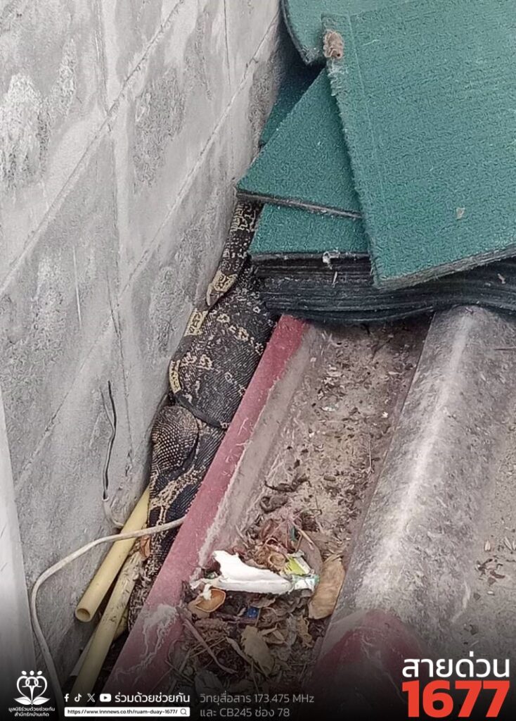 อาสาร่วมด้วยคุ้มภัย 006 รับแจ้งจากประชาชนขอความช่วยเหลือจับสัตว์เลื้อยคลาน อยู่ข้างหลังบ้านพัก ถนนรามอินทรา ซอย 117 แยก 4 แขวงมีนบุรี เขตมีนบุรี กรุงเทพฯ