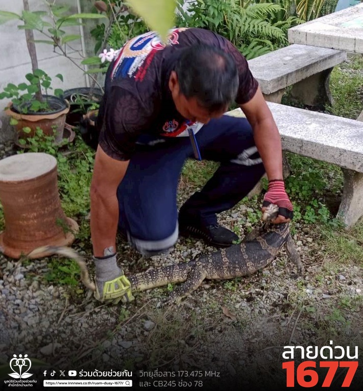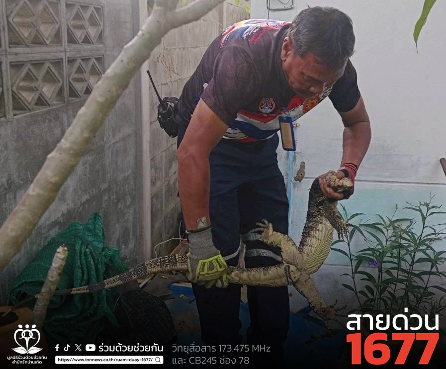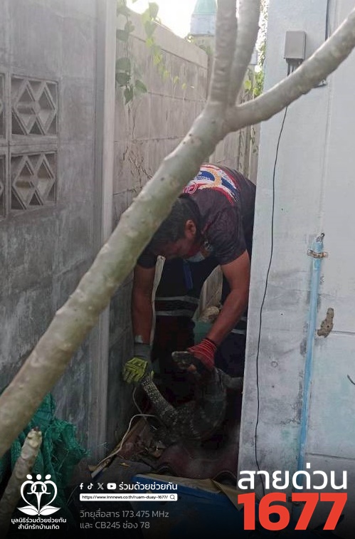 อาสาร่วมด้วยคุ้มภัย 006 ได้เข้าตรวจสอบ พบเป็นตัวเงินตัวทองจำนวน 1 ตัว ความยาวประมาณ 1 เมตร หลบซ่อนตัวอยู่ข้างหลังบ้านพัก จึงได้นำอุปกรณ์เข้าช่วยเหลือ ทำการจับตัวนำออกมาได้เป็นผลสำเร็จ และนำไปปล่อยคืนสู่ธรรมชาติเป็นที่เรียบร้อย พื้นที่ สน.มีนบุรี