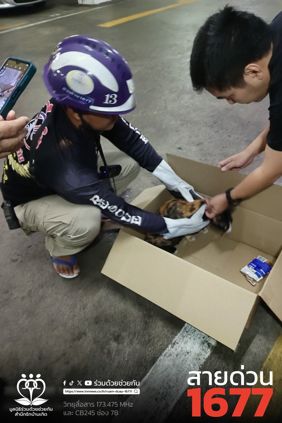 ศูนย์สื่อสารร่วมด้วยช่วยกัน ประสานอาสาร่วมด้วยฯเดินทางเข้าไปตรวจสอบ ได้ยินเสียงลูกแมวร้องออกมาจากภายในห้องเครื่องรถ อาสาจึงช่วยกันจับแมวออกมาได้สำเร็จ และปลอดภัย โดยมีเจ้าของรถเป็นผู้รับเลี้ยงต่อ