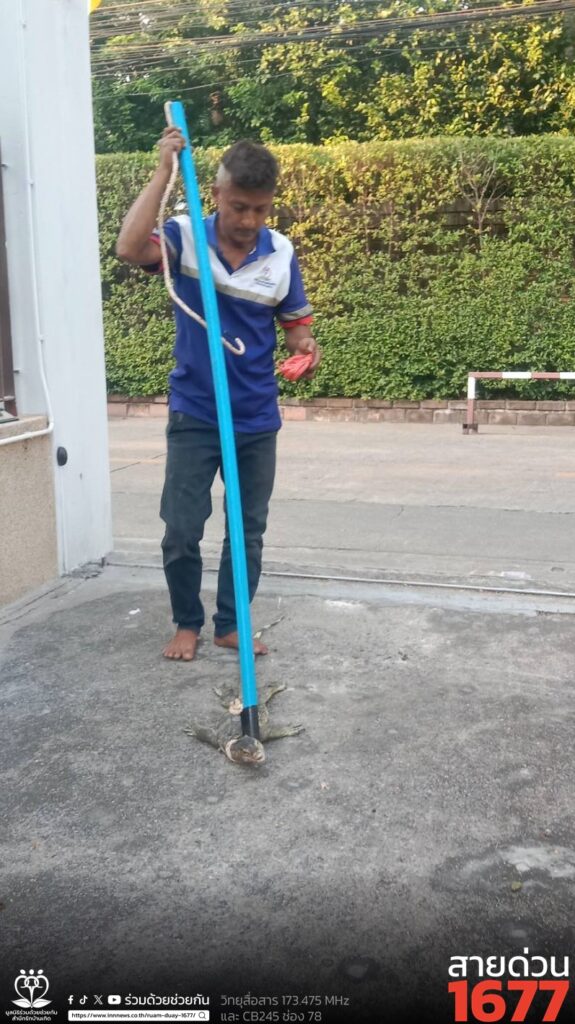 ตัวเงินตัวทองอยู่บนต้นไม้ โทร.1677 ร่วมด้วยช่วยกัน ประสานอาสาร่วมด้วยเข้าช่วยเหลือ