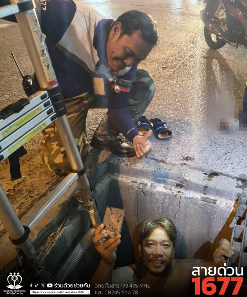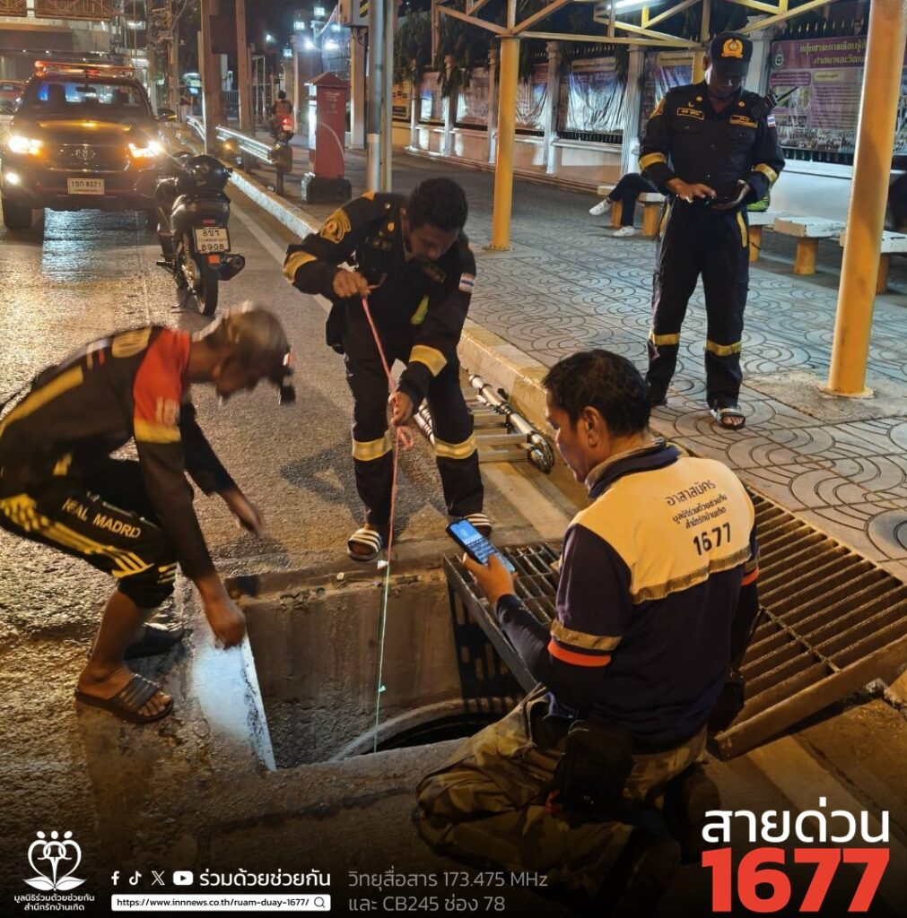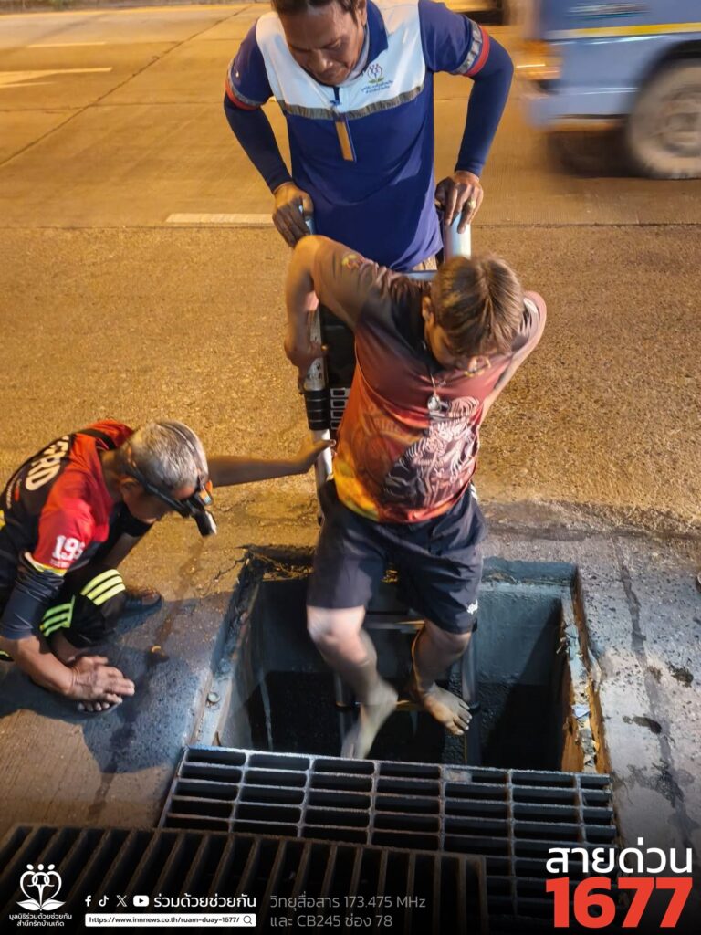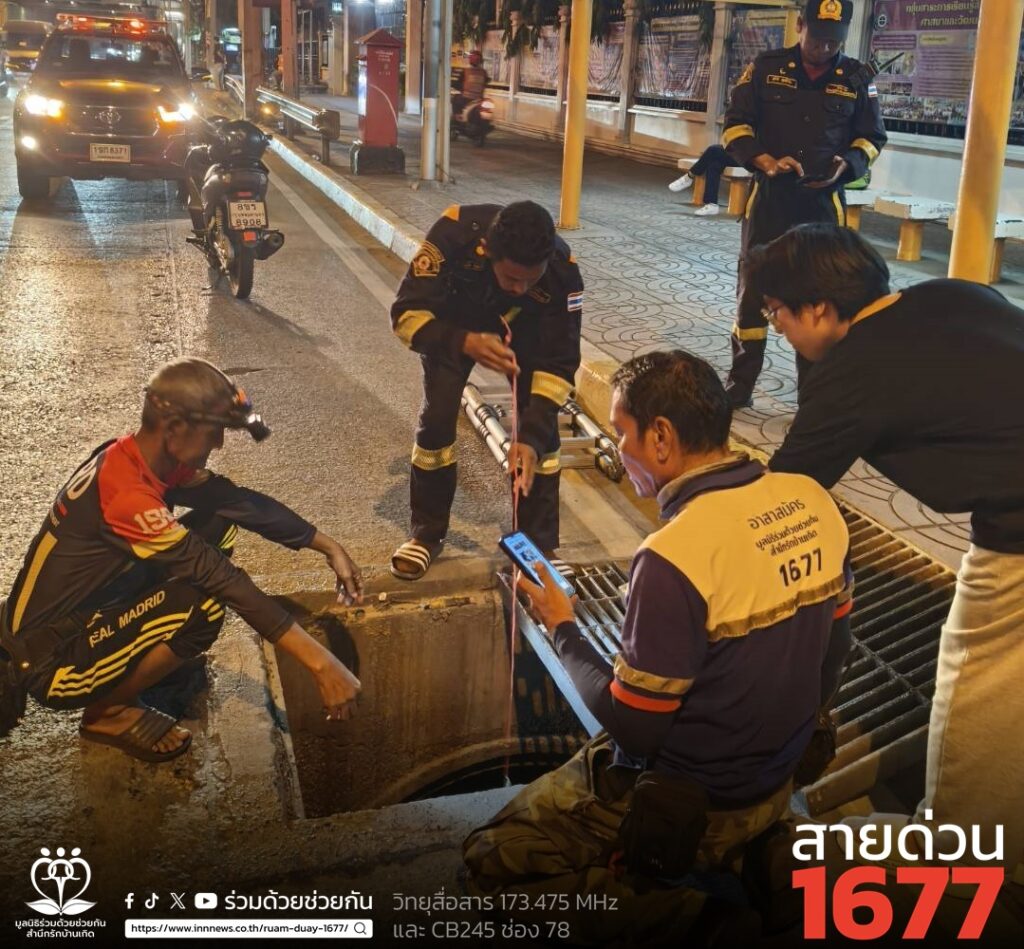 เดือดร้อน! ทำฮาร์ดดีสก์ตกท่อระบายน้ำ โทร.1677 ร่วมด้วยช่วยกัน ประสานอาสาร่วมด้วยเข้าช่วยเหลือ