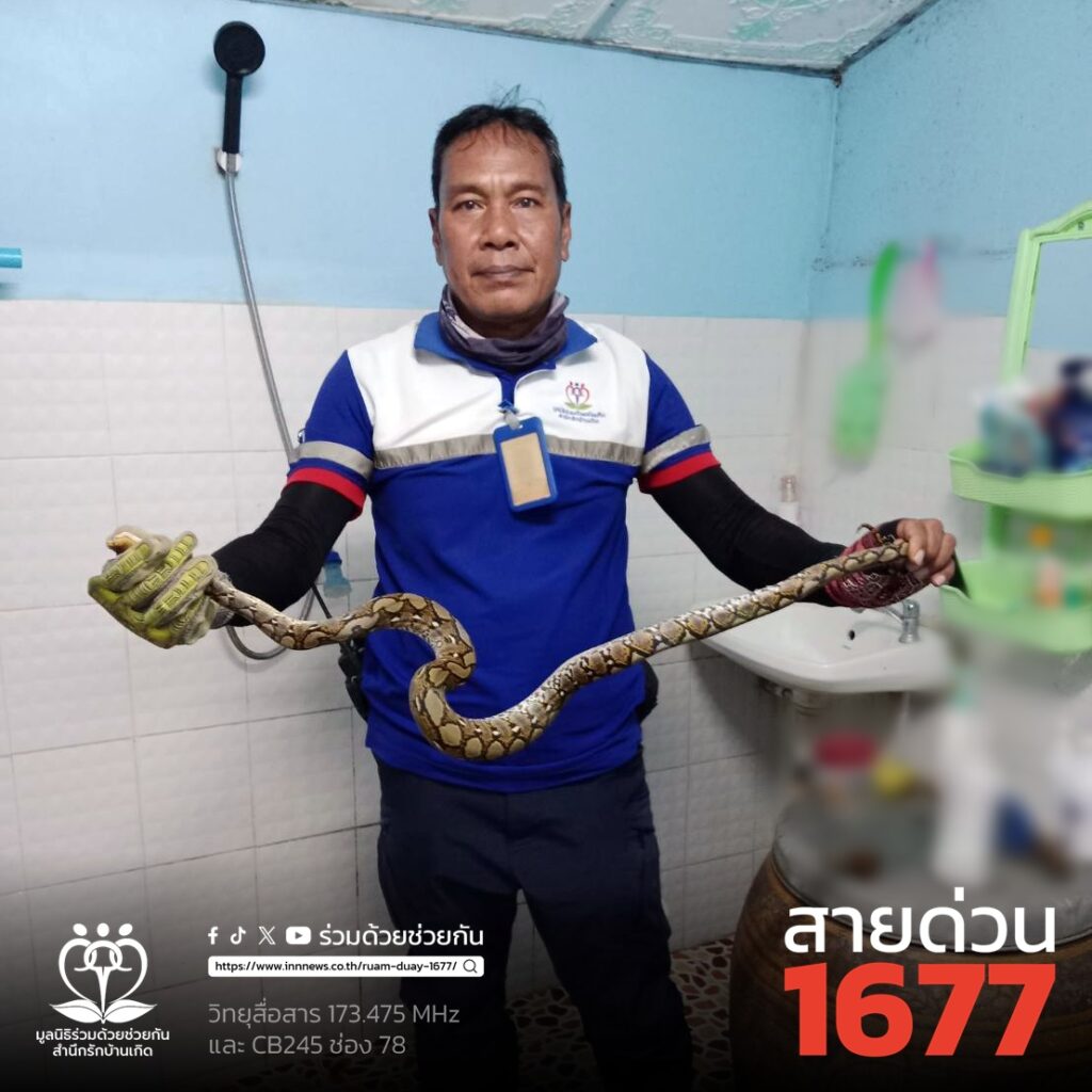 ช่วยจับงูเหลือมโผล่ในห้องน้ำ