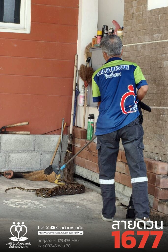 อาสาร่วมด้วยฯช่วยจับงูเหลือมเลื้อยเข้าบ้าน ซอยประชาอุทิศ 76 ถนนประชาอุทิศ เขตทุ่งครุ กทม.