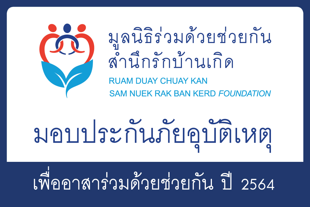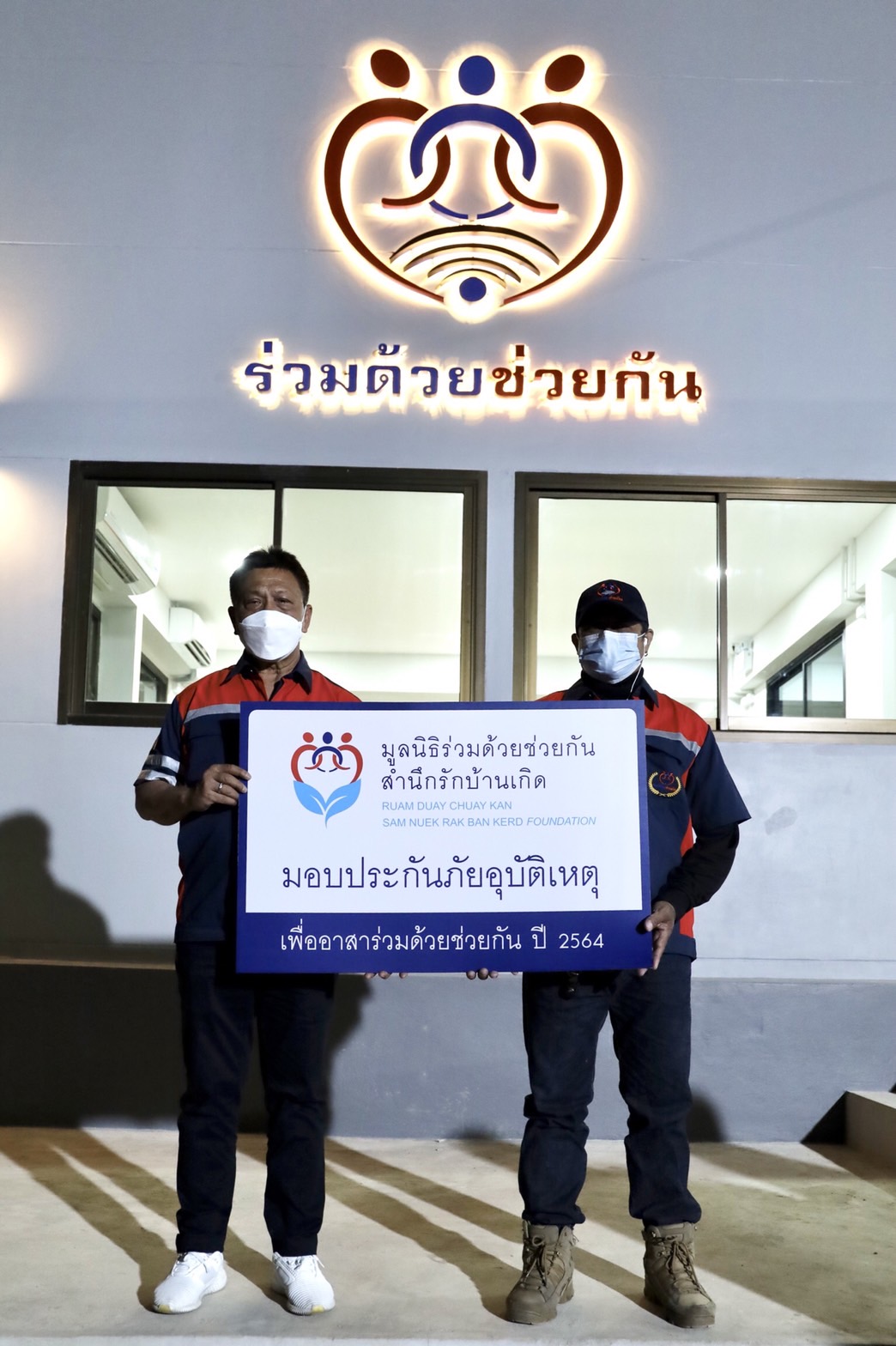 มูลนิธิร่วมด้วยช่วยกันสำนึกรักบ้านเกิดมอบประกันอุบัติเหตุ ปี 2564 ให้กับอาสาร่วมด้วยช่วยกัน เพื่อเป็นขวัญและกำลังใจในการปฏิบัติหน้าที่แก่อาสาสมัครที่ออกปฏิบัติหน้าที่ช่วยเหลือประชาชน