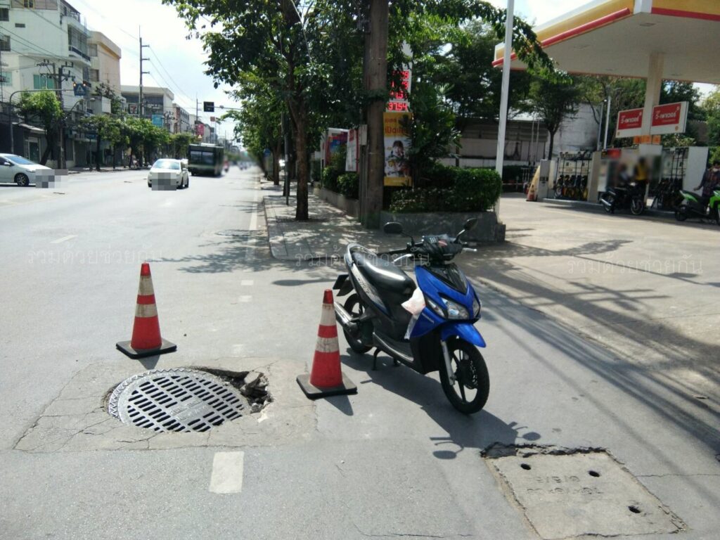 เตือนระวัง! ฝาท่อชำรุด ปากซอยปรีดีพนมยงค์ 19