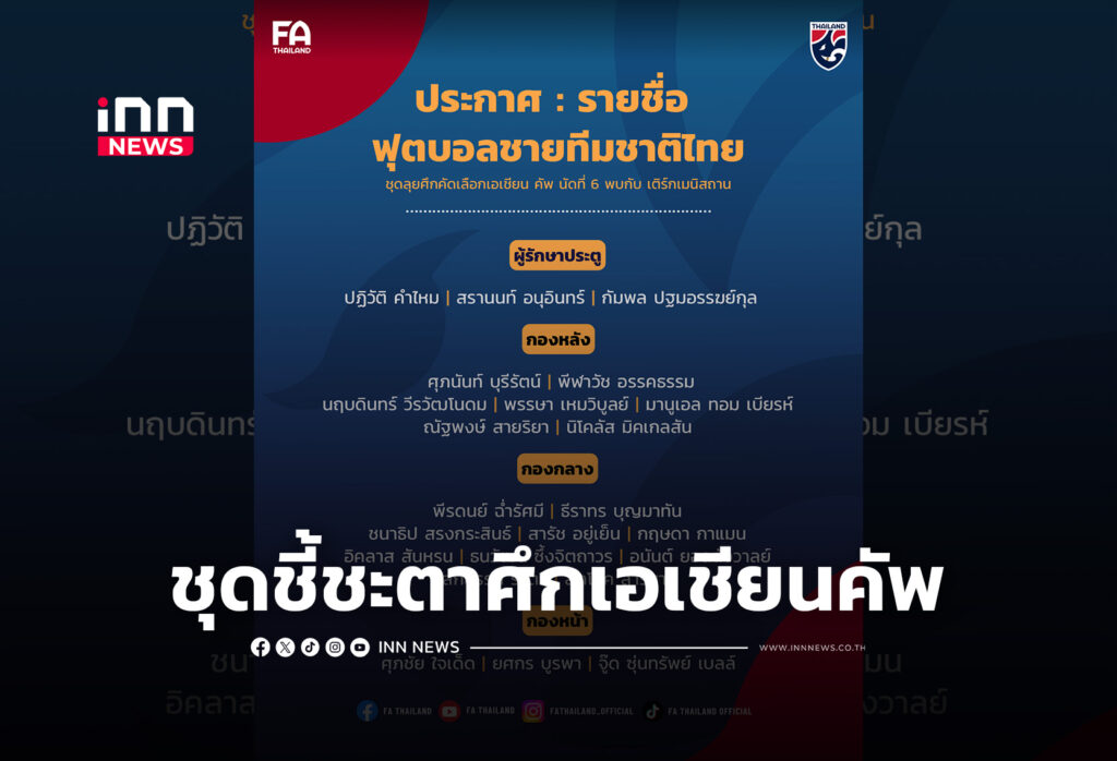 ประกาศรายชื่อ 23 นักเตะทีมชาติไทย ชุดชี้ชะตาศึกเอเชียน คัพ รอบคัดเลือก พบกับ เติร์กเมนิสถาน