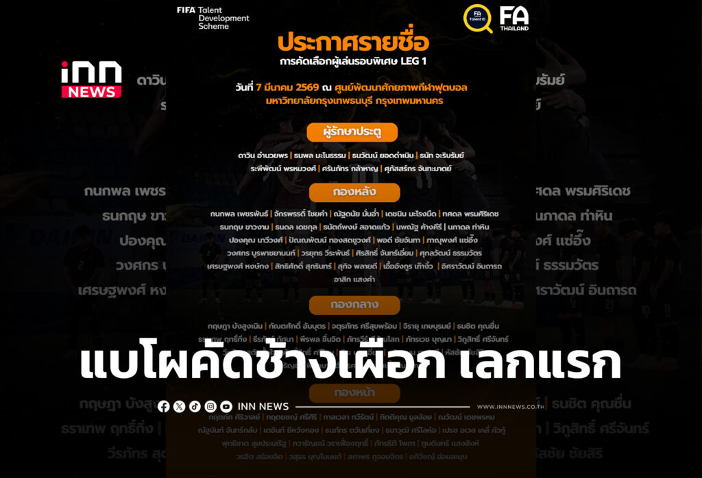 ประกาศรายชื่อ ผู้ที่ผ่านการคัดเลือกในโครงการ FIFA TDS Talent ID 2026 เลกแรก เพื่อเตรียมทีมชาติไทย U16