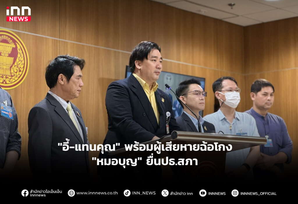 "อี้-แทนคุณ" พร้อมผู้เสายหายฉ้อโกง "หมอบุญ" ยื่นข้อมูลเกี่ยวกับการกระทำความผิด ต่อประธานสภา มูลค่าความเสียหายประมาณ 15,000 ล้านบาท