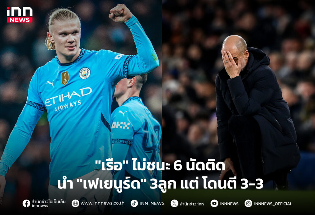 แมนเชสเตอร์ ซิตี้  หาชัยชนะไม่เป็น 6 เกมติดต่อกัน หลังทำได้แค่เปิดสังเวียน เอติฮัด สเตเดียม เสมอ เฟเยนูร์ด  3-3