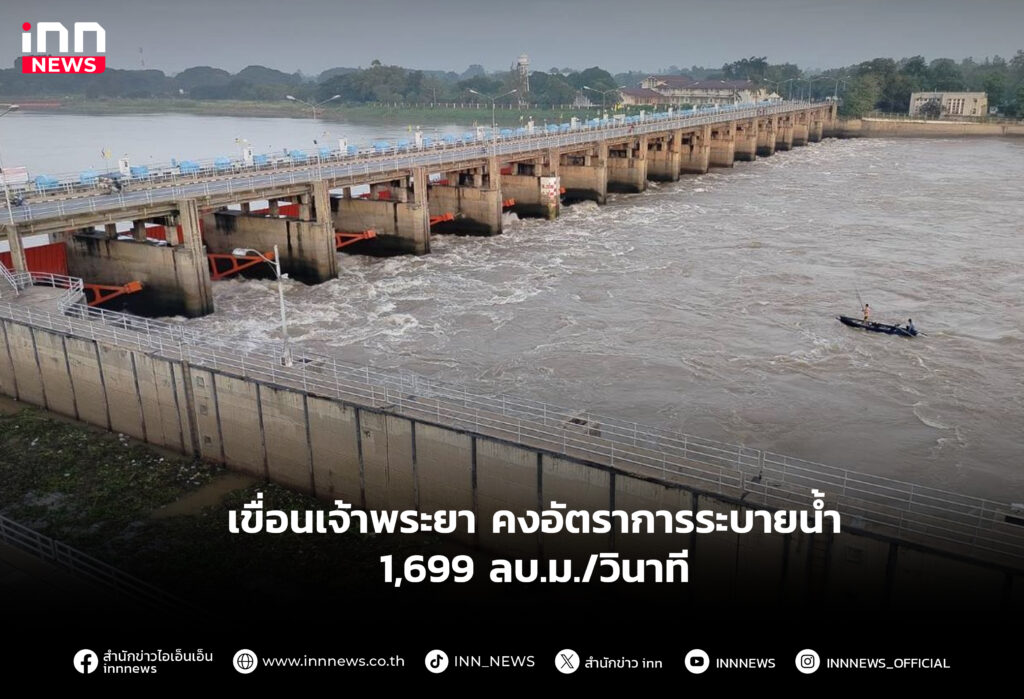 เขื่อนเจ้าพระยา คงอัตราการระบายน้ำ1,699 ลบ.ม./วินาที