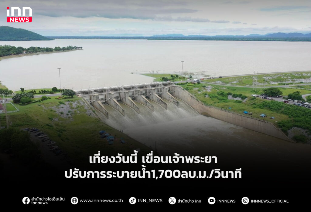 เที่ยงวันนี้ เขื่อนเจ้าพระยา จะปรับการระบายเป็น 1,700 ลบ.ม./วินาที ขณะเขื่อนป่าสักฯ เตรียมปรับเพิ่มการระบายน้ำ หลังน้ำไหลลงอ่างฯ มากขึ้น