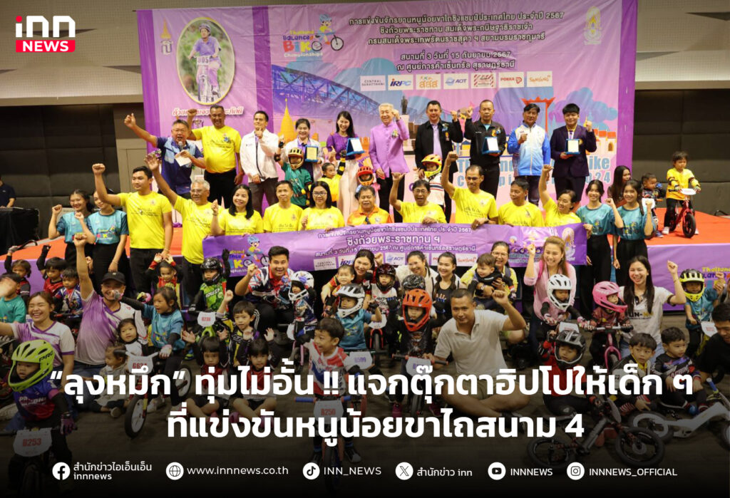 “ลุงหมึก” ใจดี..ทุ่มไม่อั้น!! แจกตุ๊กตาฮิปโปโปเตมัสรับกระแส “หมูเด้ง” ให้เด็ก ๆ ที่ร่วมแข่งขันศึกหนูน้อยขาไถชิงแชมป์ประเทศไทยฯ สนามที่ 4 ที่เขื่อนวชิราลงกรณ อ.ทองผาภูมิ จ.กาญจนบุรี วันที่ 8-9 พ.ย.67 นอกจากนี้ยังมีรางวัลพิเศษเป็นตุ๊กตา Labubu และตุ๊กตา Baby Three เหมิอนเดิม รวมทั้งของรางวัลอื่น ๆ ให้เด็ก ๆ และผู้ปกครองได้ร่วมกิจกรรมจับสลากสานสัมพันธ์ในครอบครัว โดยสมาคมกีฬาจักรยานแห่งประเทศไทยฯ เปิดโอกาสให้หนูน้อยจากทั่วประเทศสมัครแข่งขันเพื่อแย่งชิงโควตาภาคสุดท้ายไปแข่งขันรอบ TCA ซูเปอร์แชมป์ ในวันที่ 17 พ.ย.67 ที่สวนกีฬากมล กทม. ขณะที่ศึกบีเอ็มเอ็กซ์ชิงแชมป์ประเทศไทยฯ สนามที่ 5 เป็นสนามสุดท้ายที่จะชี้ชะตาว่านักปั่นคนใดจะเป็นแชมป์ประเทศไทย และได้ครองถ้วยพระราชทานฯ พร้อมทั้งการแข่งขันนานาชาติระดับ C1 ซึ่งมีนักปั่นต่างชาติสนใจมาร่วมชิงชัยจำนวนมาก ส่วนทีมไทยนำทัพโดย “โกเมธ สุขประเสริฐ” นักปั่นชุดโอลิมปิกเกมส์ 2024