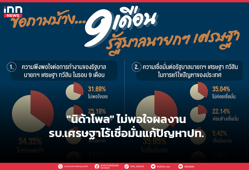 “นิด้าโพล” ไม่พอใจผลงานรบ.เศรษฐาไร้เชื่อมั่นแก้ปัญหาปท.