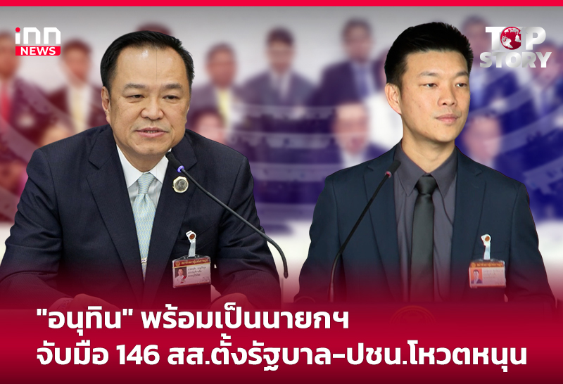 หลังจากพรรคประชาชน มีมติชัดเจนว่า จะยกมือสนับสนุนให้ “อนุทิน ชาญวีรกูล” หัวหน้าพรรคภูมิใจไทย เป็นนายกรัฐมนตรี ภายใต้เงื่อนไข 5 ข้อ โดย “อนุทิน” แถลงพร้อมเป็นนายกรัฐมนตรี และลงนามข้อตกลง จัดตั้งรัฐบาล 146 เสียง ยืนยันเดินหน้าแก้รัฐธรรมนูญ ยุบสภาฯ ภายใน 4 เดือน
