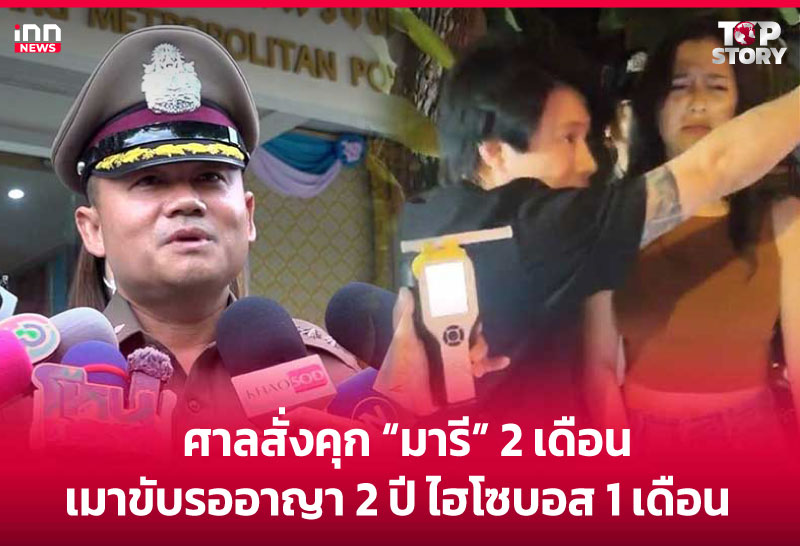 ศาลสั่งคุก “มารี” 2 เดือน เมาแล้วขับ รออาญา 2 ปี ไฮโซบอส 1 เดือน