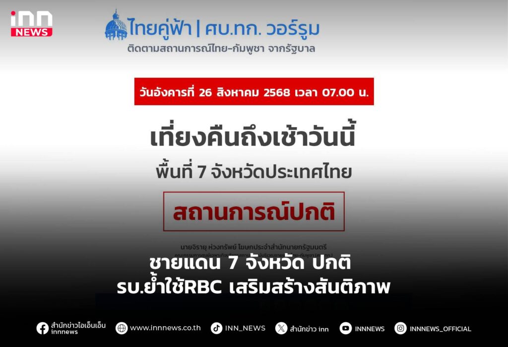 สถานการณ์ชายแดน 7 จังหวัด ปกติ รัฐบาลย้ำดูแลความปลอดภัยชายแดนต่อเนื่อง พร้อมใช้การประชุม RBC เสริมสร้างสันติภาพ