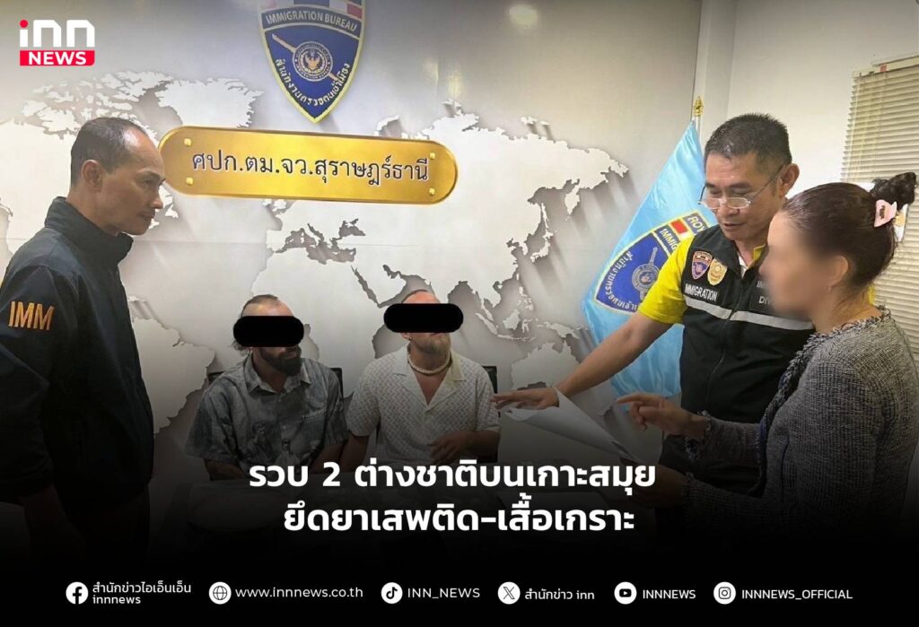 ตม.สุราษฎร์ฯ บุกจับชาวต่างชาติ 2 รายกลางเกาะสมุย ยึดยาเสพติด-เสื้อเกราะกันกระสุน