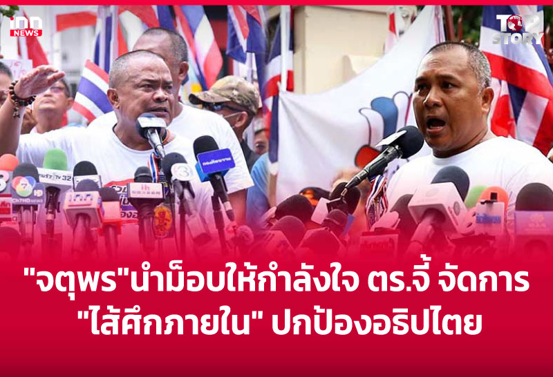 “จตุพร” นำม็อบให้กำลังใจ ตร.จี้ จัดการ “ไส้ศึกภายใน” ปกป้องอธิปไตย
