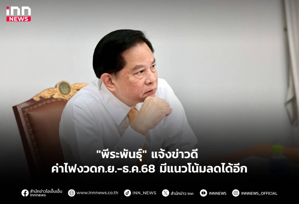 “พีระพันธุ์” แจ้งข่าวดี ค่าไฟงวดก.ย.-ธ.ค.68 มีแนวโน้มลดได้อีก
