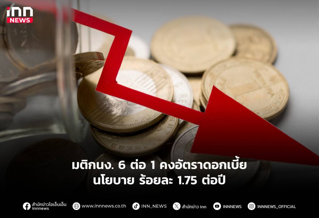 มติกนง. 6 ต่อ 1 คงอัตราดอกเบี้ยนโยบาย ร้อยละ 1.75 ต่อปี