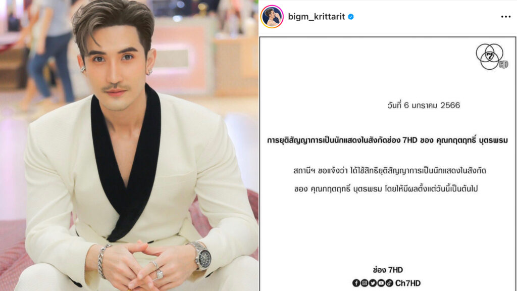 “บิ๊กเอ็ม กฤตฤทธิ์” โพสต์แล้ว หลังช่อง7ร่อนจดหมายยุติสัญญา
