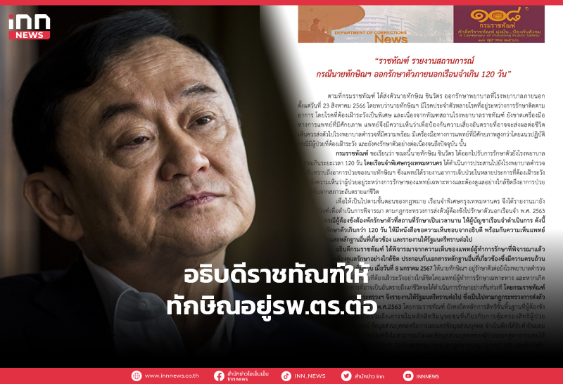 อธิบดีกรมราชทัณฑ์ มีความเห็นให้ทักษิณ รักษาตัว รพ.ตำรวจ ต่อ ชี้ พิจารณาตามความเห็นแพทย์ แต่ไม่สามารถเปิดเผยข้อมูลผู้ป่วย ได้