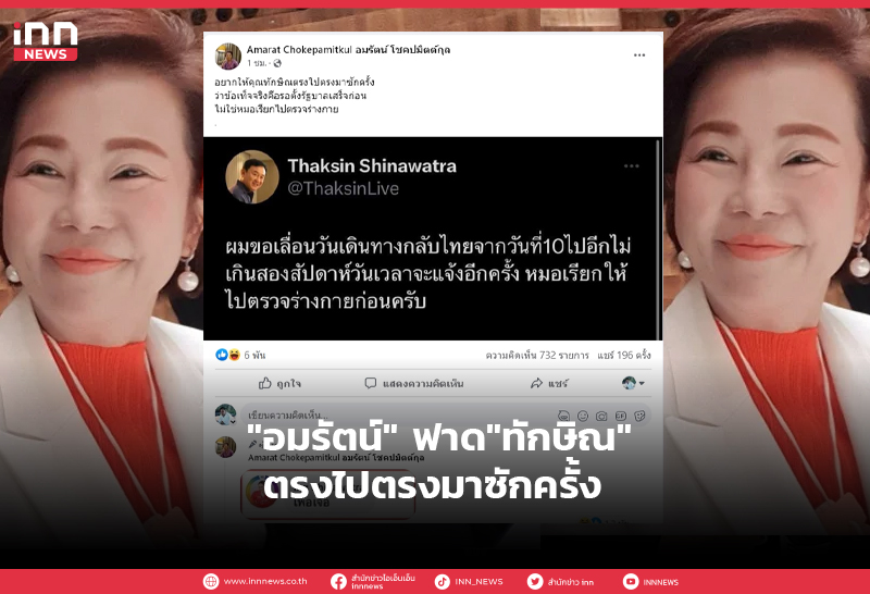 "อมรัตน์" ฟาด"ทักษิณ" ตรงไปตรงมาซักครั้ง ว่าข้อเท็จจริง คือรอตั้งรัฐบาลเสร็จก่อน ไม่ใช่หมอเรียกไปตรวจร่างกาย