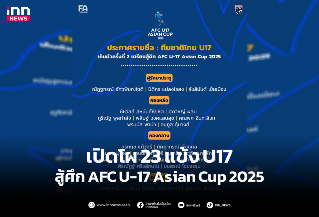 เปิดโผ 23 แข้ง ทีมชาติไทย U17 สู้ศึก AFC U-17 Asian Cup 2025