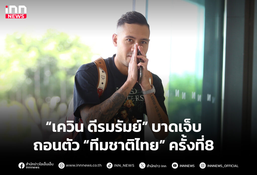 ครั้งที่ 8  “เควิน ดีรมรัมย์” ถอนตัว “ทีมชาติไทย” ก่อนลุยฟีฟ่าเดย์ ดวล เลบานอน-ลาว พบว่ามีการเจ็บทกล้ามเนื้อสะโพก และ มีเลือดคั่ง