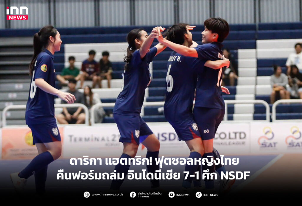 ดาริกา แฮตทริก! ฟุตซอลหญิงทีมชาติไทย คืนฟอร์มถล่ม อินโดนีเซีย 7-1 ไปตัดสินแชมป์กับ เวียดนามนัดสุดท้าย ศึก NSDF ที่โคราช