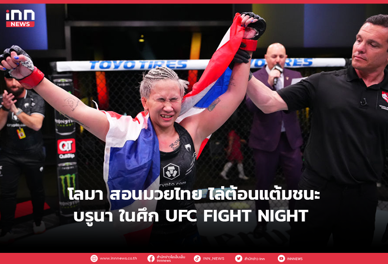 โลมา ลูกบุญมี นักสู้ UFC หนึ่งเดียวจากประเทศไทย อาศัยวิชาแม่ไม้มวยไทยและการออกอาวุธอันหนักหน่วง เป็นฝ่ายไล่ต้อนเอาชนะคะแนน บรูนา บราซิล คู่ต่อกรจากบราซิล ได้แบบเป็นเอกฉันท์ทั้ง 3 เสียง ในการกลับขึ้นสังเวียนในศึก UFC FIGHT NIGHT : HERMANSSON VS PYFER ณ สังเวียน UFC APEX ,ลาส เวกัส สหรัฐอเมริกา เมื่อวันอาทิตย์ที่ 11 กุมภาพันธ์ ที่ผ่านมา