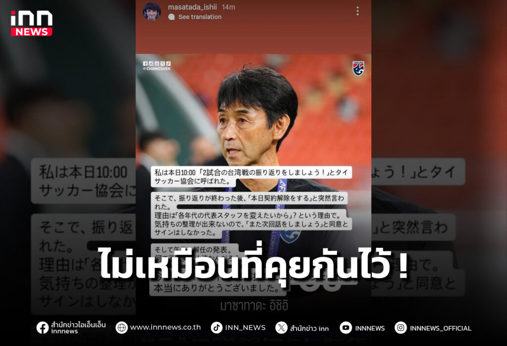 หลังจากที่ทางสมาคมกีฬาฟุตบอลฯ ประกาศแยกทาง “มาซาทาดะ อิชิอิ” ไปเมื่อวันที่ 21 ตุลาคม 2568 ทางด้าน อิชิอิ ได้มีการออกมาโต้กลับ ผ่านไอจีสตอรี่ส่วนตัว