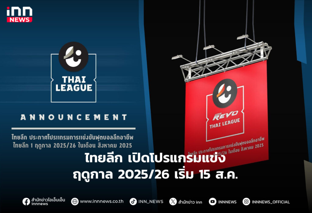 ไทยลีก เปิดโปรแกรมแข่ง ฤดูกาล 2025/26 เริ่ม 15 ส.ค.