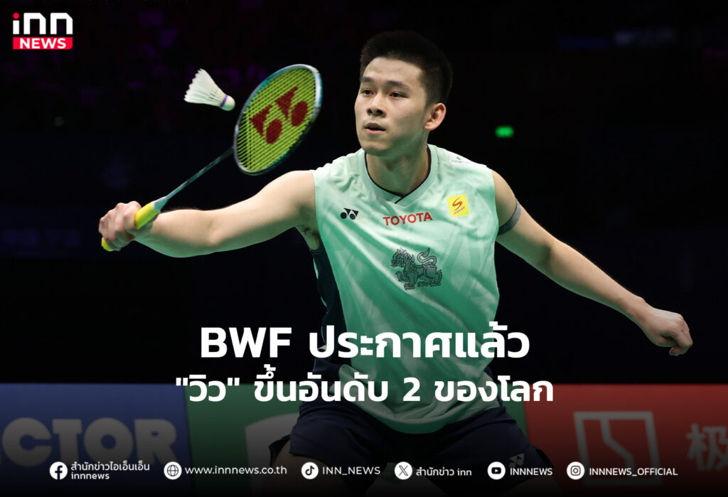 สหพันธ์แบดมินตันโลก ประกาศอย่างเป็นทางการแล้ว "วิว" กุลวุฒิ ขยับขึ้น มืออันดับ 2 ของโลก ด้วยแต้มรวม 89,138 คะเเนน