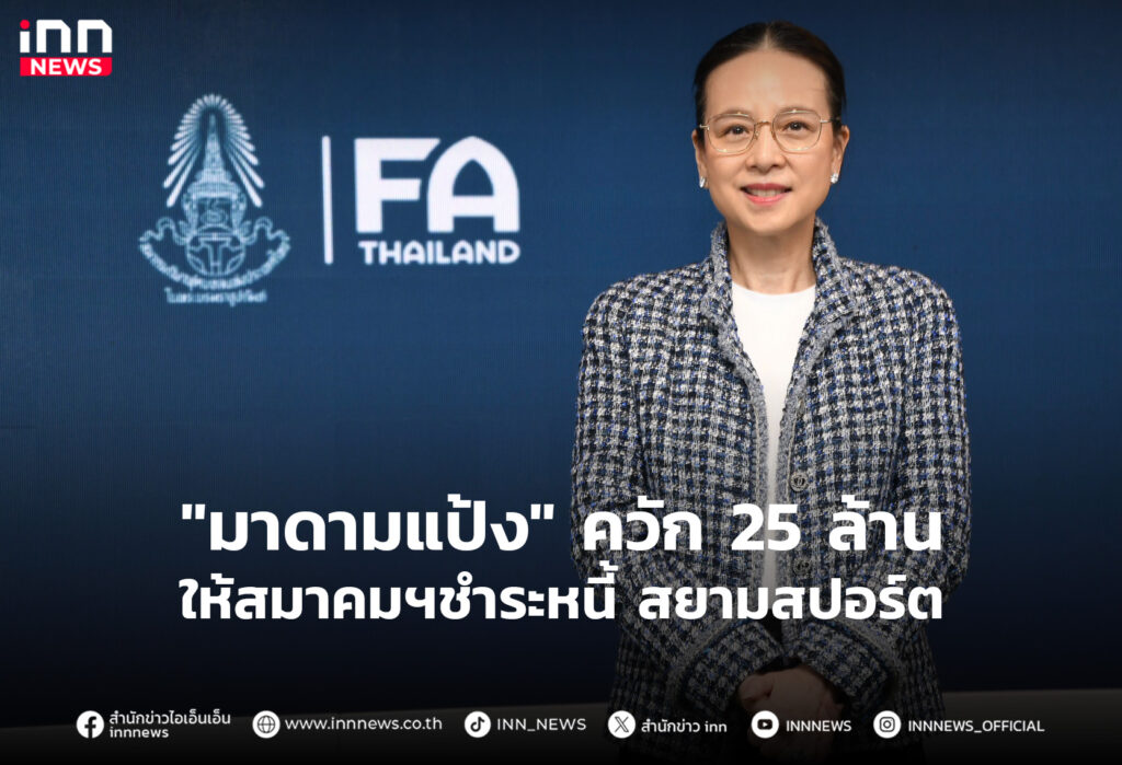 "มาดามแป้ง" แถลงบริจาคเงินส่วนตัว 25 ล้าน ให้สมาคมกีฬาฟุตบอลแห่งประเทศไทย ชำระหนี้ก้อนแรก สยามสปอร์ต