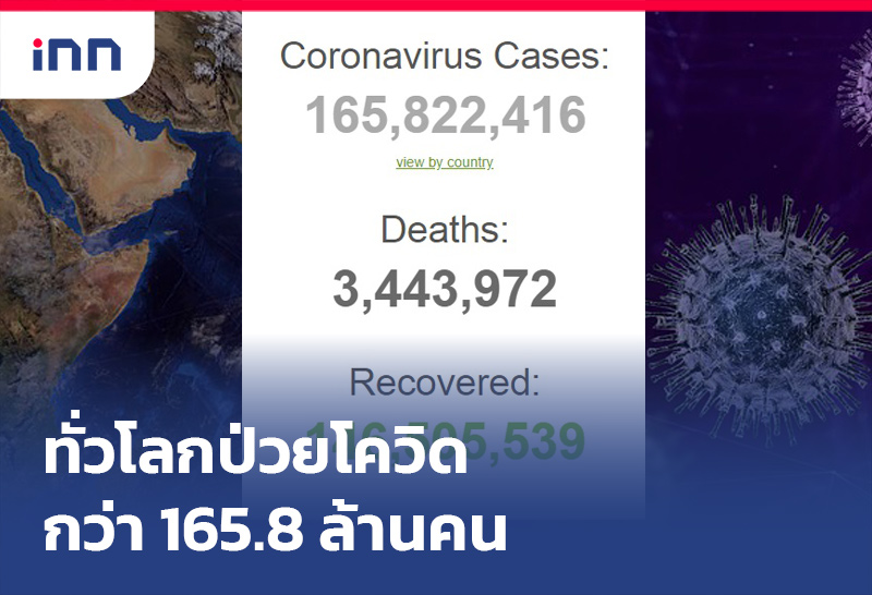 ทั่วโลกป่วยโควิด-19กว่า165.8ล้านคน เพิ่มขึ้น6.3แสนคน อินเดีย-บราซิลยังน่าห่วงยอดคนป่วยเสียชีวิตสูงต่อเนื่อง