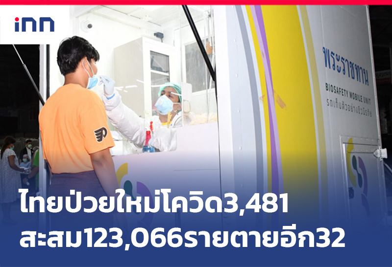 ป่วยใหม่โควิดอีก 3,481 สะสม 123,066 ราย เสียชีวิต 32 รวม 735 ทั่วโลกป่วย 165 ล้าน