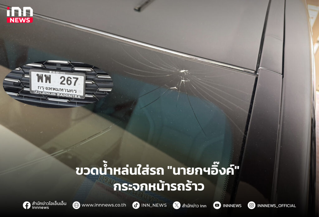 ขวดน้ำหล่นใส่รถ “นายกฯอิ๊งค์” กระจกหน้ารถร้าว