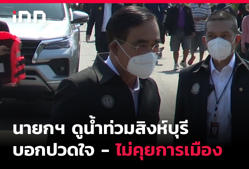 นายกฯ ดูน้ำท่วมสิงห์บุรี บอกปวดใจ-ไม่คุยการเมือง