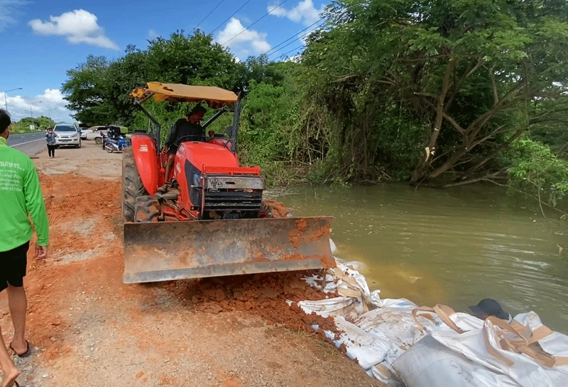 มวลน้ำก้อนใหญ่ โถมเข้าเมืองขอนแก่น เจ้าหน้าที่เร่งปิดทางน้ำ เสริมคันคลอง หวั่นน้ำทะลักเข้าเขตเศรษฐกิจ