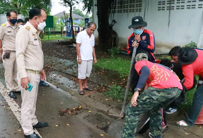 ปทุมธานีฝนตกทั้งคืนทต.บ้านกลางเร่งสูบน้ำเสริมแนวกระสอบทรายป้องกันน้ำท่วมอำนวยความสะดวกปชช.