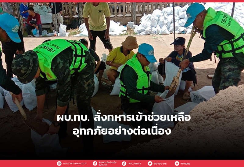 ผบ.ทบ. สั่งการหน่วยทหารเข้าช่วยเหลืออุทกภัยอย่างต่อเนื่อง พร้อมเฝ้าระวังสถานการณ์อย่างใกล้ชิด