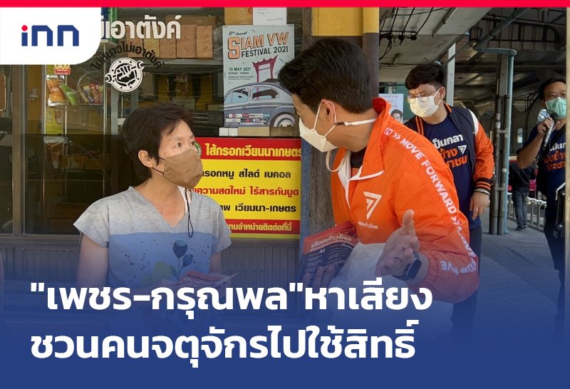 "เพชร-กรุณพล" ลงพื้นที่เกษตรหาเสียง ชวนคนจตุจักรไปใช้สิทธิ์ ระบุจุดขายเป็นพรรคใหม่ไม่มีประวัติคอร์รัปชัน และเป็นพรรคทางเลือกที่ทำให้ประชาชนและการเมืองมีส่วนร่วมกัน