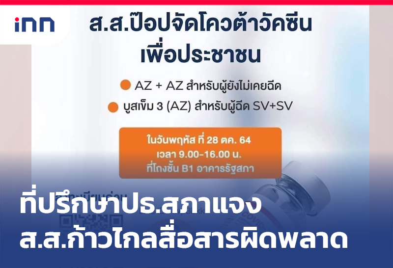ที่ปรึกษาประธานสภา ยันไม่มีการให้พรรคการเมืองลงทะเบียนนำประชาชนมาฉีดวัคซีน ส.ส.ก้าวไกล ยันสื่อสารผิดพลาดลบโพสต์แล้ว