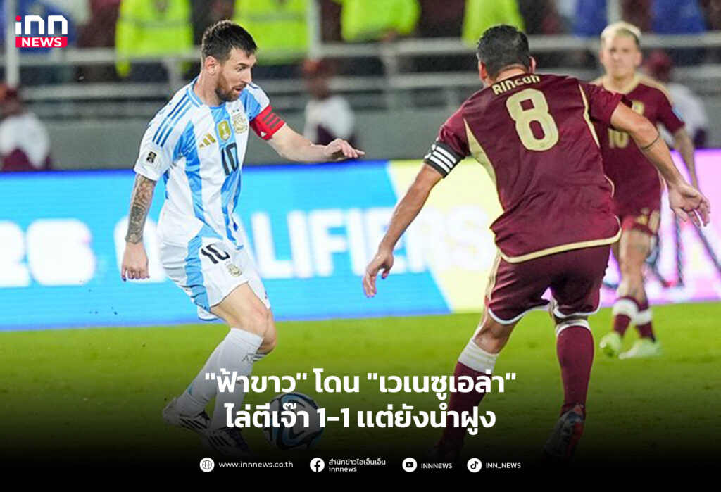 อาร์เจนติน่า นำก่อนตั้งแต่ต้นเกม เเต่โดนตีเสมอครึ่งหลัง ทำได้แค่บุกเจ๊า เวเนซูเอล่า 1-1  ยังเพียงพอนำจ่าฝูง รอบคัดเลือกฟุตบอลโลก โซนอเมริกาใต้